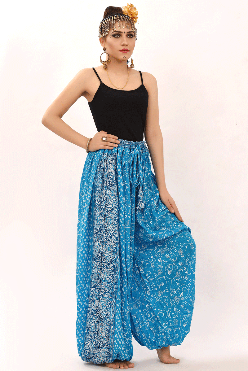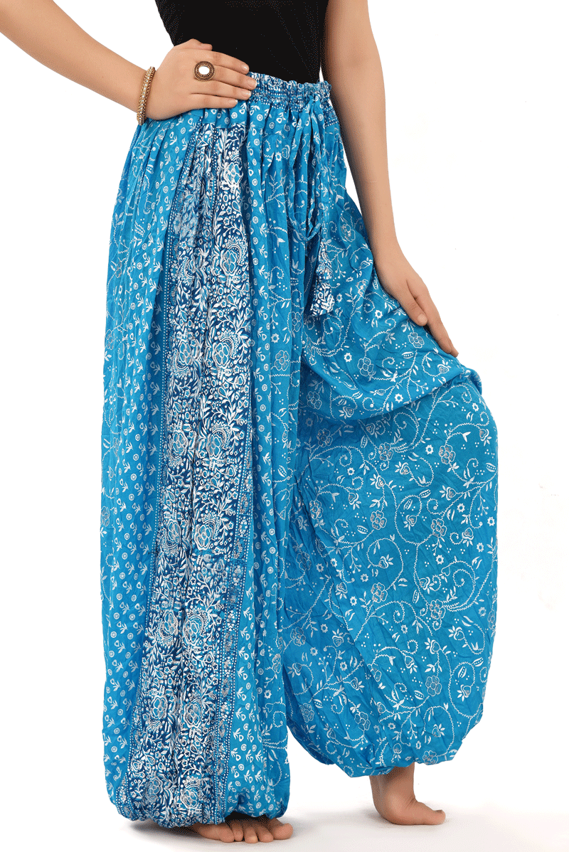 BLOCK PRINT HAREM PANT IN BLOOMER STYLE Assuit Blue Silver