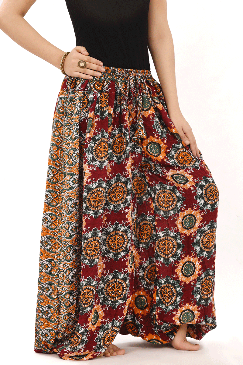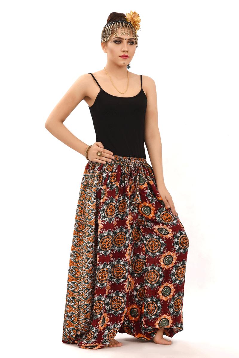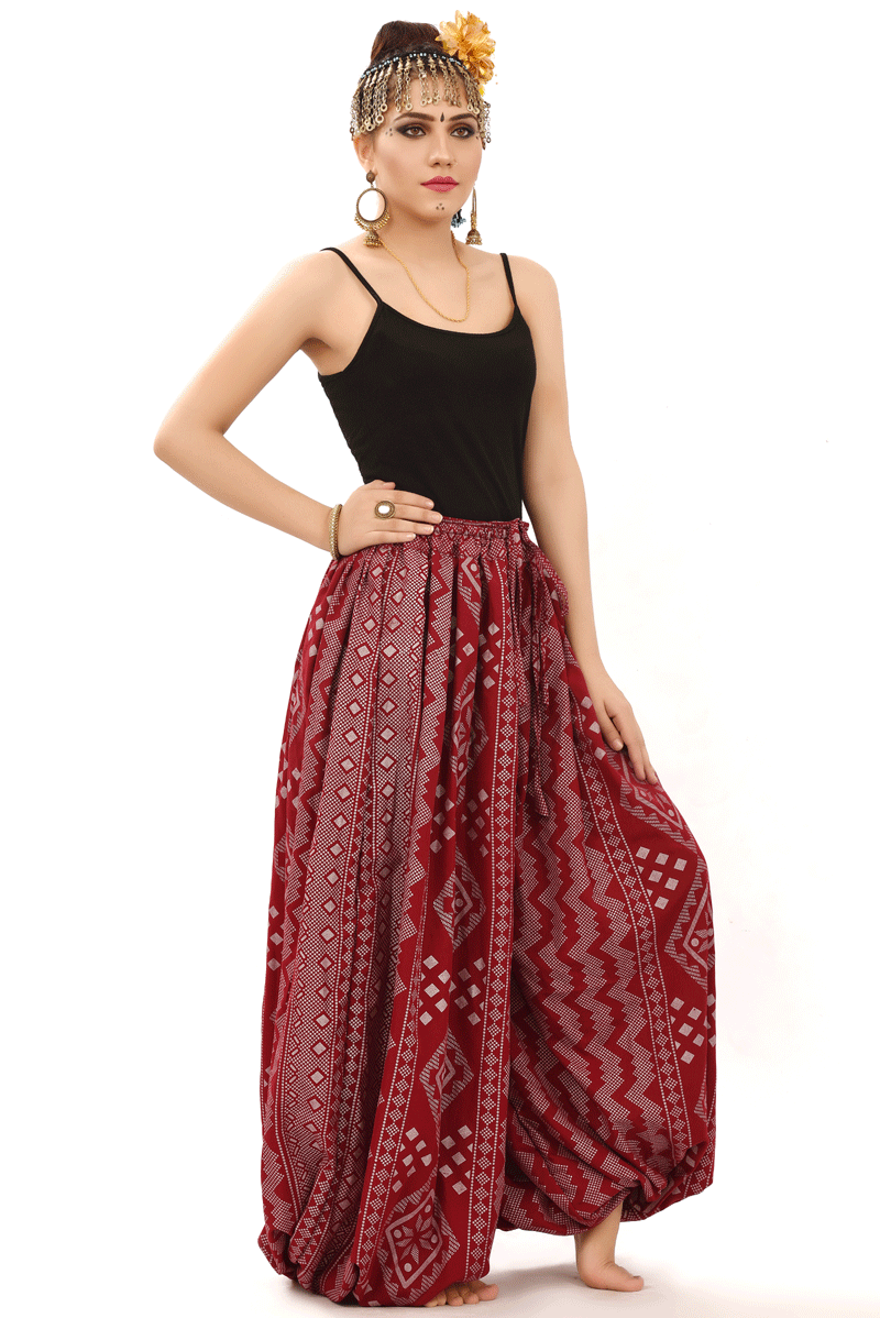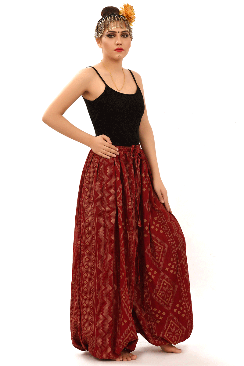 BLOCK PRINT HAREM PANT IN BLOOMER STYLE ASSUIT BURGUNDY Silver
