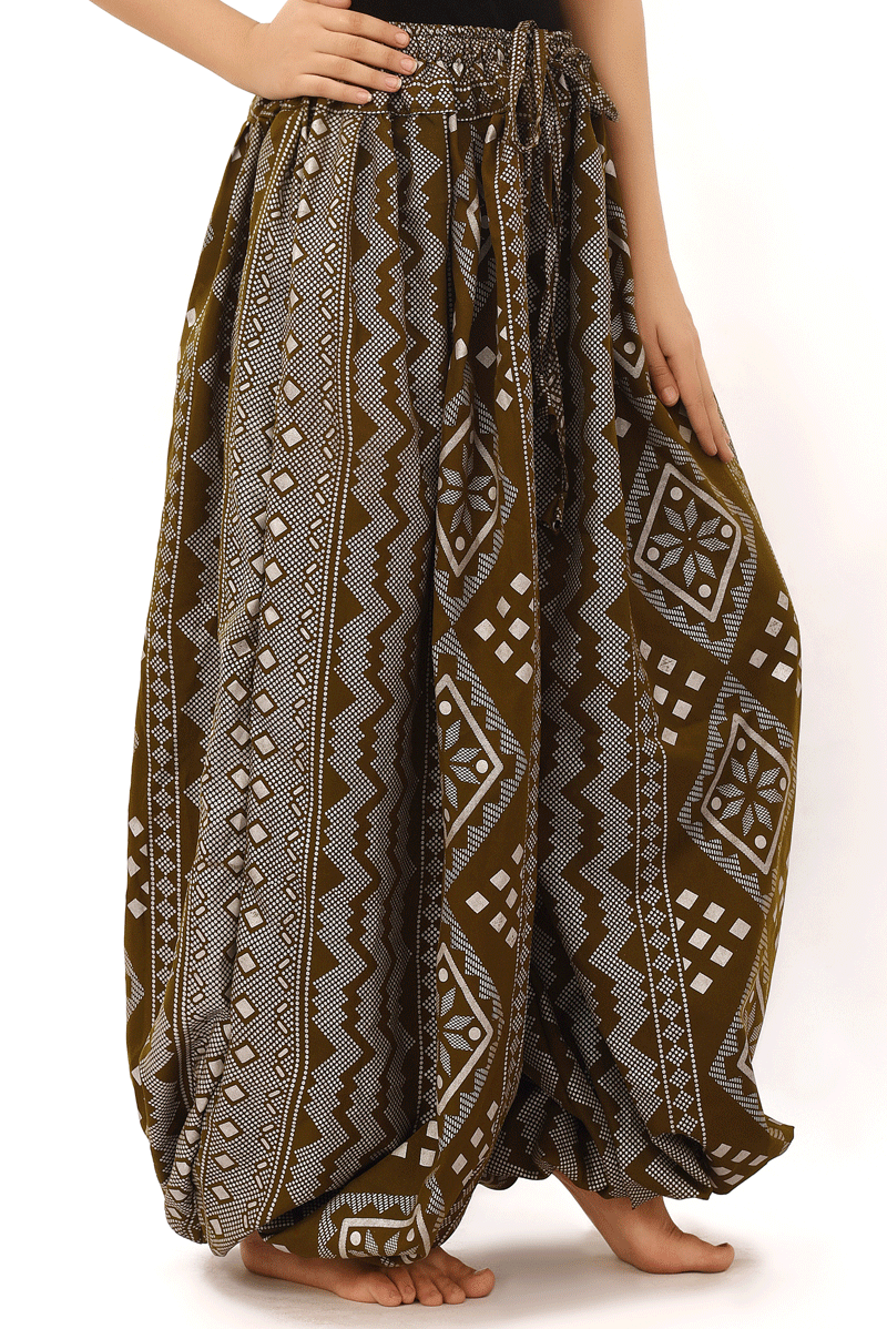 BLOCK PRINT HAREM PANT IN BLOOMER STYLE Assuit Dark Brown Silver