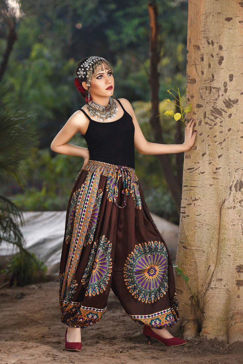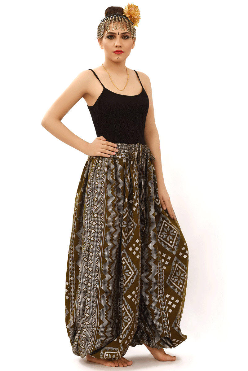 BLOCK PRINT HAREM PANT IN BLOOMER STYLE Dark Brown New Collection 2019