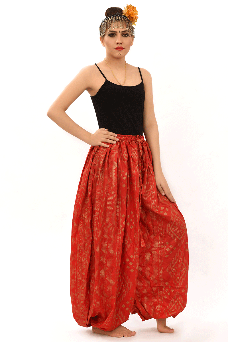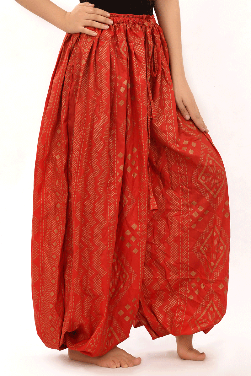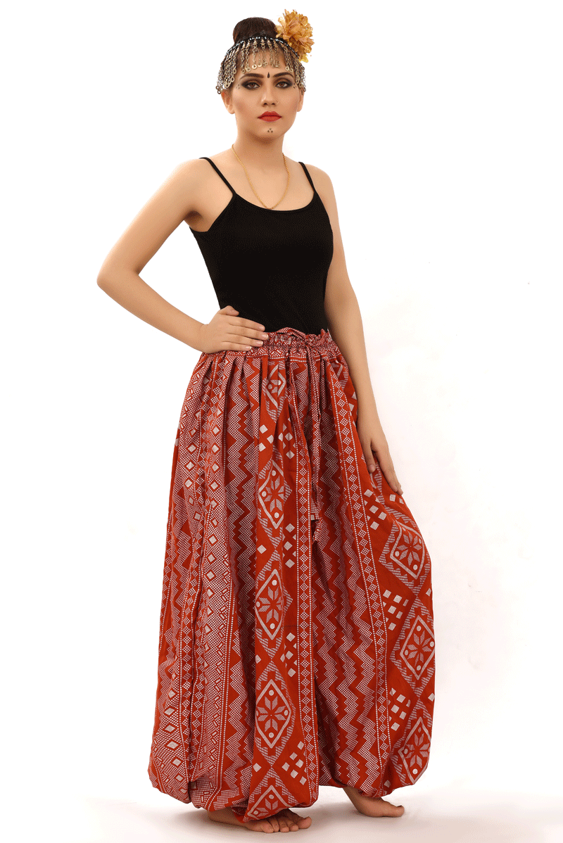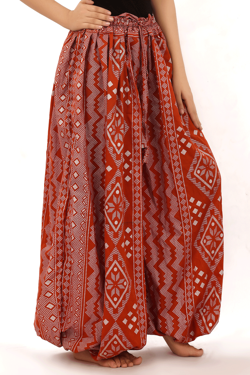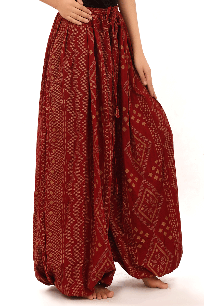 BLOCK PRINT HAREM PANT IN BLOOMER STYLE Assuit Red Gold
