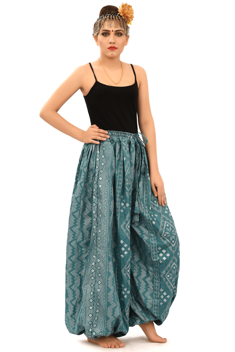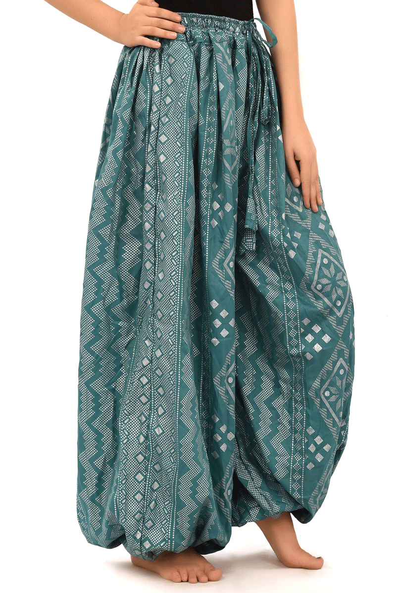 BLOCK PRINT HAREM PANT IN BLOOMER Assuit Sea Green Silver