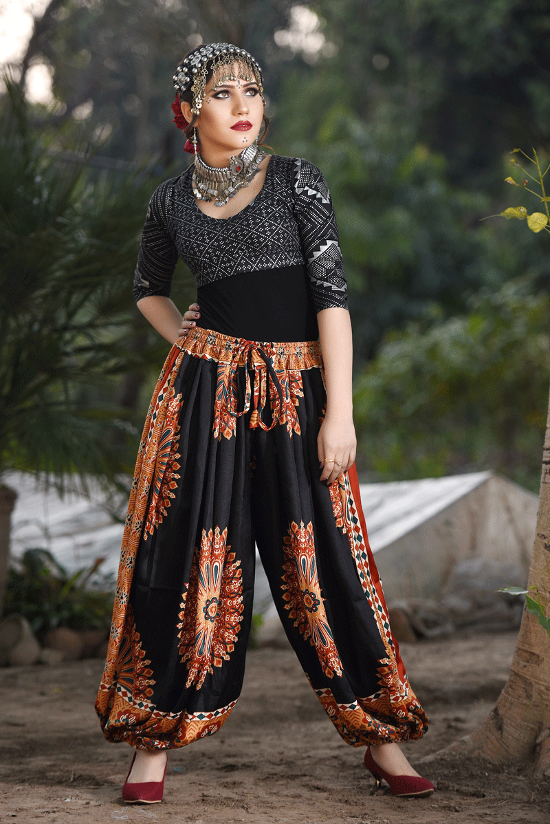 BLOCK PRINT HAREM PANT IN BLOOMER STYLE Black New Collection 2019