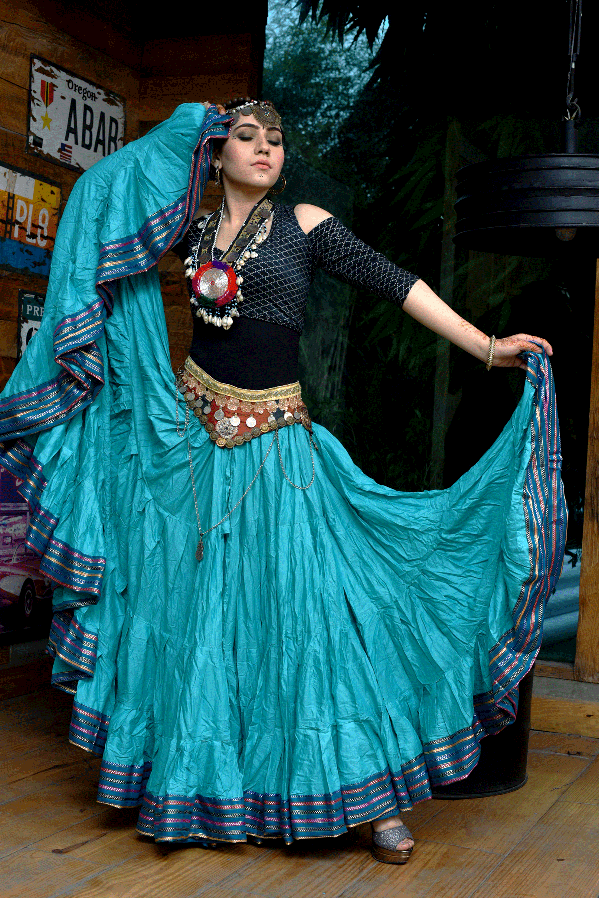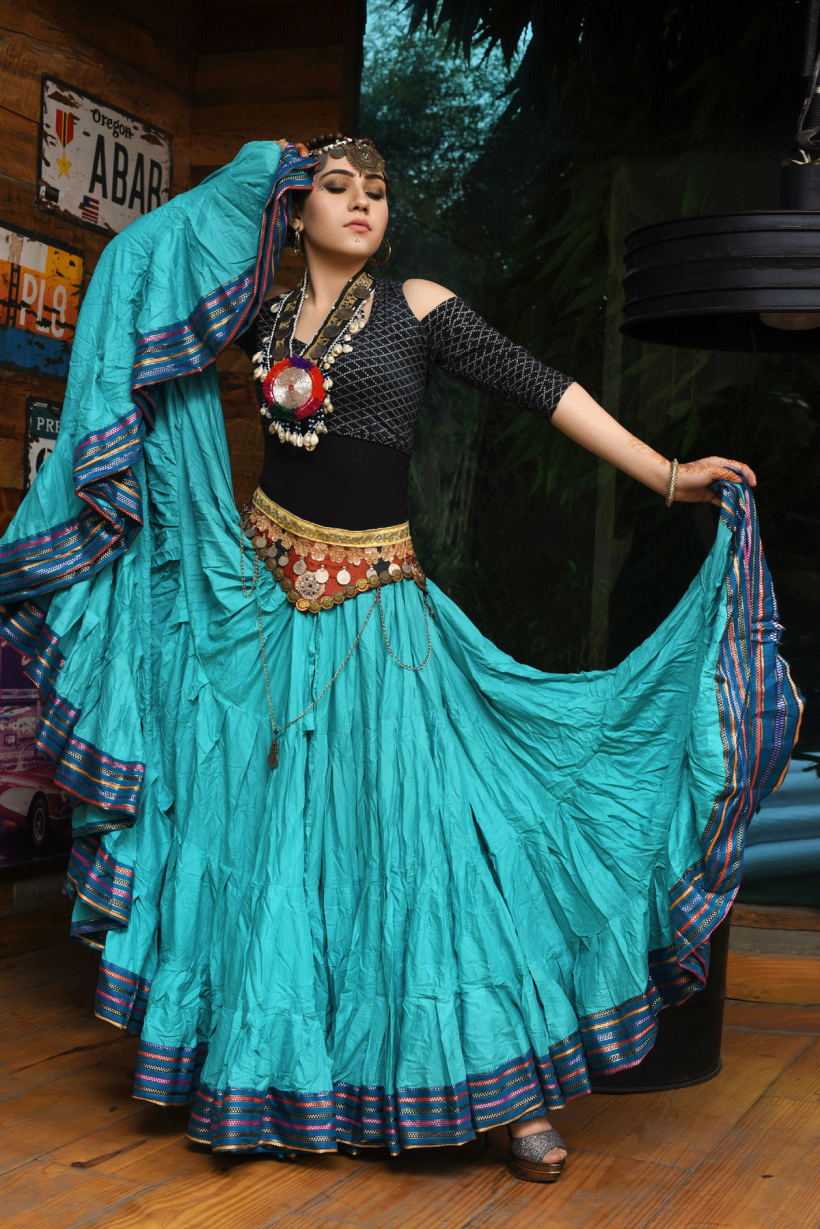 Tribal Belly dance 25YARDS Padma Maharani Skirt (100% Cotton) Light Seagreen